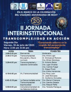 Este evento forma parte del ciclo académico impulsado por la REDIT, bajo la coordinación de la Dra. Crisálida Villegas (presidenta) y la Dra. Nancy Schiavino (vicepresidenta), quienes vienen consolidando espacios de pensamiento colaborativo, ético y transdisciplinario en el ámbito latinoamericano.
